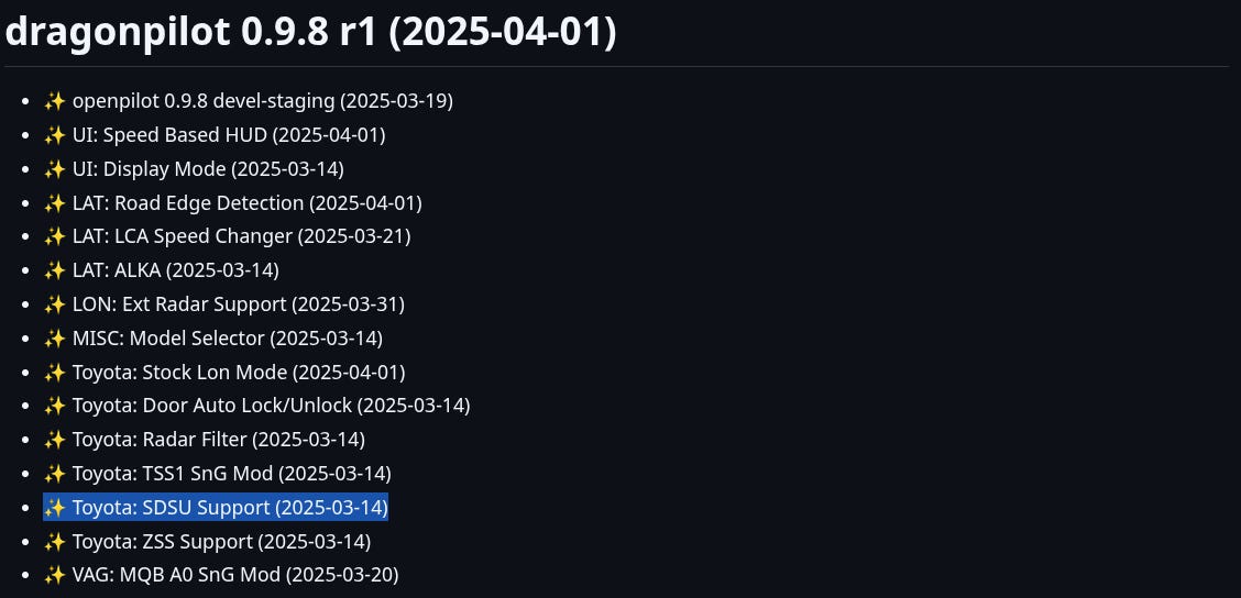 然而,隨著 openpilot 的快速迭代,一個重大的轉變發生了。這篇文章的目的,就是為了清楚地說明 SDSU 的來龍去脈、dragonpilot 在這過程中做了哪些努力,以及在現階段,使用者該如何選擇最適合自己的方案。