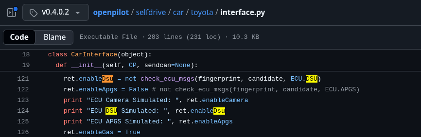 在這些車款上,原廠的 ACC 功能是由一個稱為 DSU (Driving Support Unit) 的電腦所控制。如果 openpilot 想要接管油門和剎車,就必須繞過 DSU。